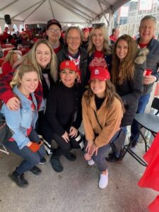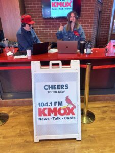 It’s Opening Day with KMOX staff including Stuart McMillian, Beth Coghlan, Rachel Zimmerman, and Amy Marxkors.