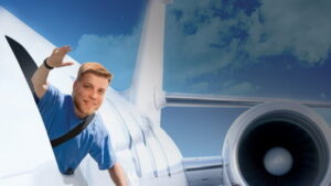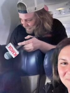 Michael Calhoun with FOX 2_s Paul Schankman on a flight to San Fransisco with St. Louis startups