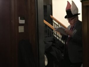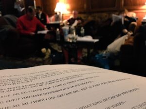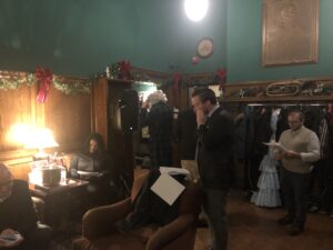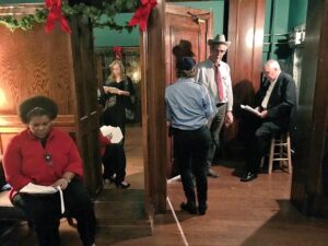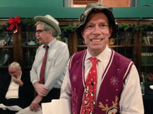 Johnny Rabbit reviewing his script backstage of a Holiday Radio Show