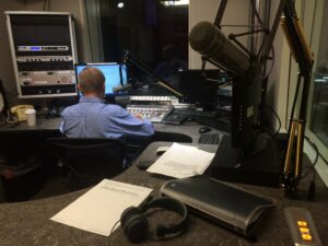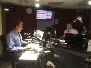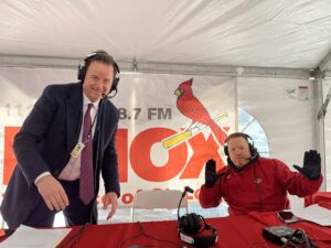 KMOX’s Michael Calhoun hosts Total Information AM from the broadcast booth at Busch Stadium – and from Mike Shannon’s ball