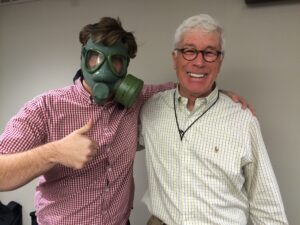 A moment of levity with Bill Reker and Michael Calhoun before covering protest