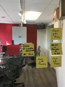 Post-it notes represent recording studio booking times years ago